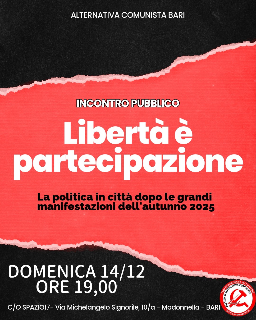 Di altro c'è urgente bisogno: di costruire quel partito comunista e rivoluzionario che ancora non c'è, basato sull'indipendenza di classe da tutti gli schieramenti borghesi, su un programma di reale alternativa al sistema capitalistico, parte di una internazionale rivoluzionaria. È questa la strada che noi continueremo a percorrere, cercando nelle piazze, nei luoghi di lavoro e nelle scuole il sostegno di un numero crescente di lavoratori e lavoratrici in lotta e di giovani.