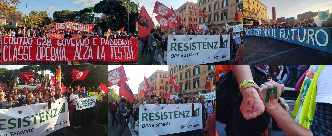 Sabato 30 ottobre a Roma hanno sfilato migliaia di persone per gridare un forte «no» al G20. Il G20 rappresenta i governi dei più ricchi Paesi capitalisti del mondo, cioè i responsabili del massacro sociale e della devastazione ambientale in corso. Ipocritamente, Draghi e gli altri rappresentanti del grande capitale internazionale hanno lamentato il fatto che gran parte della popolazione mondiale non ha accesso ai vaccini. Hanno scordato di dire che sono loro i responsabili di tutto ciò: il rifiuto di abolire i brevetti sui vaccini e di rendere pubblica l’industria farmaceutica sta provocando una strage di massa, soprattutto nei Paesi poveri. Allo stesso tempo, bisogna ringraziare i governi capitalisti del G20 se il pianeta sta collassando a causa dell’inquinamento e del surriscaldamento climatico.
